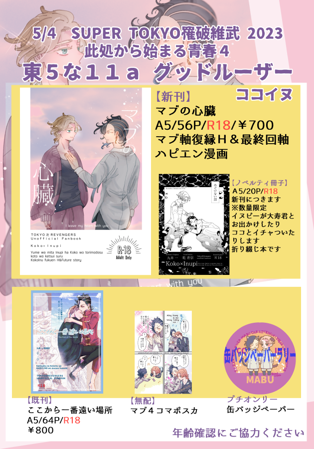 5/4スパコミのお品書きです。ココイヌです。残部は通販にいれます。ポスカもあります。よろしくお願いします🥰 新刊通販 ec.toranoana.jp/joshi_r/ec/ite… 新刊サンプル twitter.com/u_v_u/status/1… ノベルティサンプル twitter.com/u_v_u/status/1…