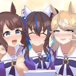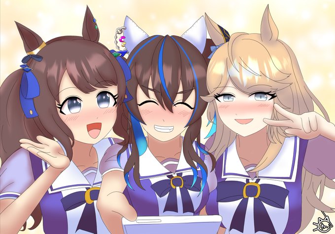 自撮りをする三人を描いてみました!! #ウマ娘 #ウマ娘プリティーダービー #ダイタクヘリオス #ゴールドシチー #トーセンジョーダン