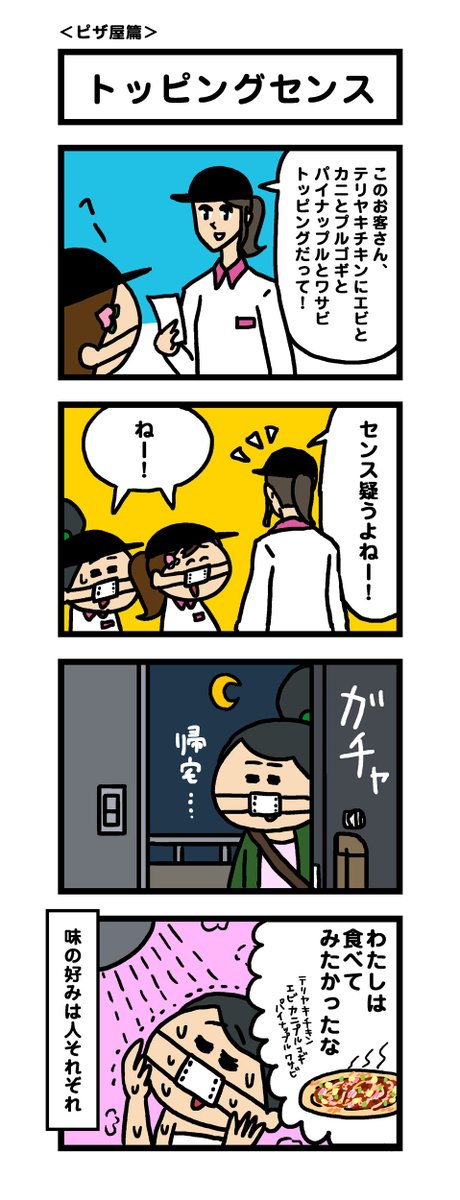 54 697 【1年前の4コマシリーズ】第5弾 お昼の合間にでもみてね。 ピザ屋篇。 #モモウメ 20/05/29 12:22