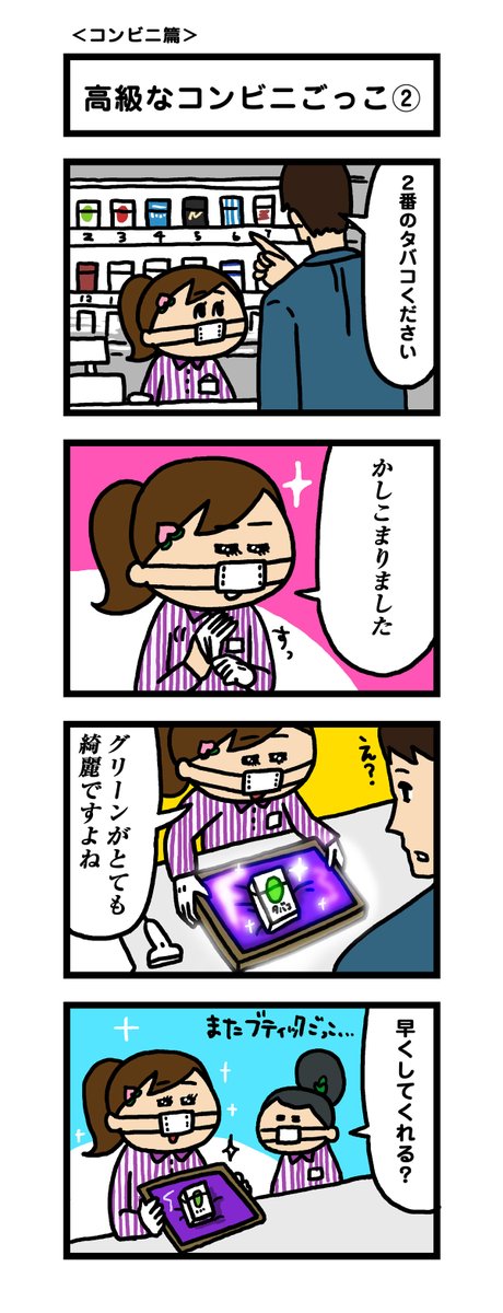 26 277 みなさんグッドモモーニング! 【1年前の4コマシリーズ】第10弾だしときまっす。 見たことない人もいると思うんで、載せとくよん。 コンビニ篇でっす。 それはそうと週末やね。 暑さ避けて乗り切りましょい。 マスク熱中症注意ですよん。 20/06/12 08:44