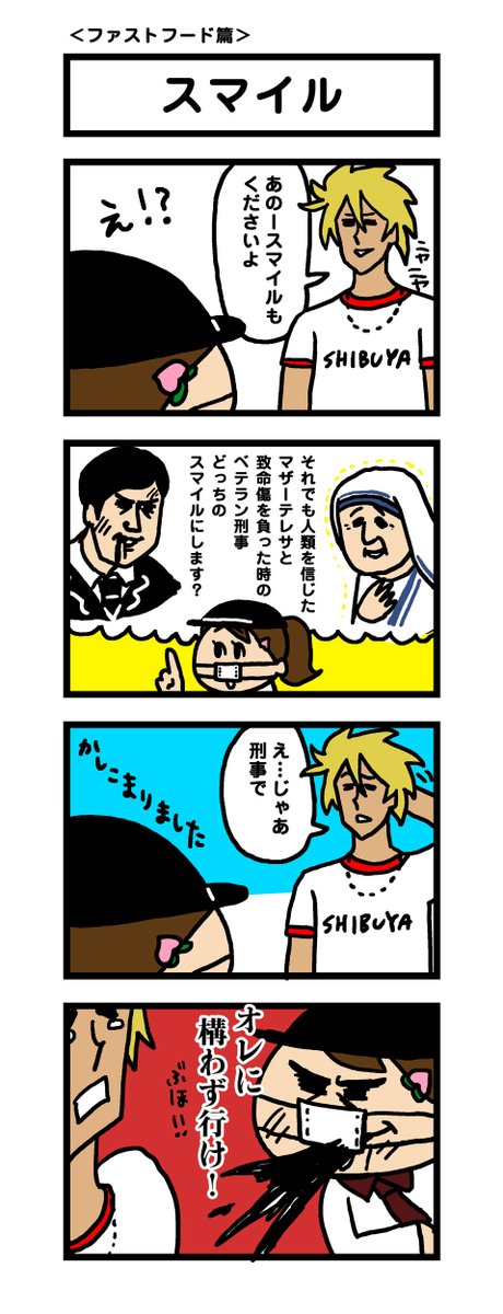【1年前の4コマシリーズ】第6弾 ファストフード篇 ご賞味ください〜。