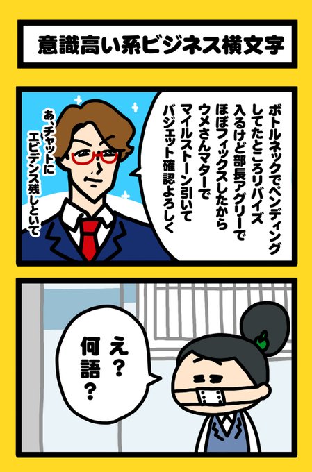 横文字は使いすぎると社内混乱おこすのでホドホドに。 #モモウメ