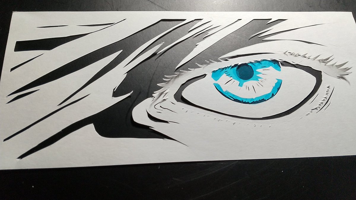 遅ればせながら、フォロワーさん100人超えました😆ありがとうございます✨五条先生のお目目でお祝いです🎉 #五条悟 #呪術廻戦ファンアート #切り絵