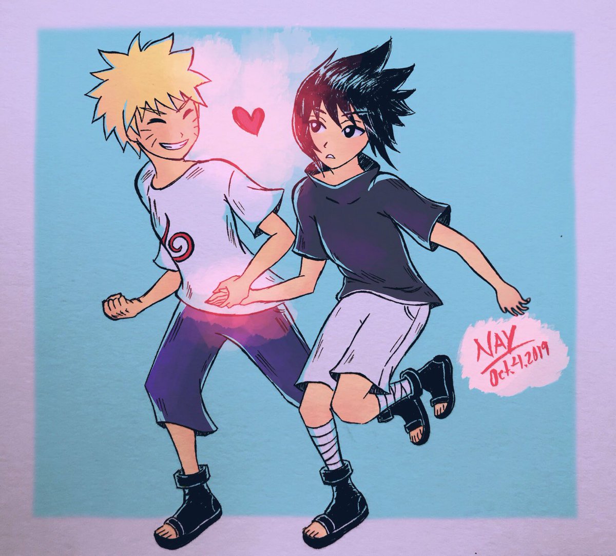 #nartober2019 day 7 : “casual” clothes 🍥🍅 alternatively : “yeah we gay keep scrolling !” #inktober2019 #narusasu #sasunaru #naruto #sasuke #nartober