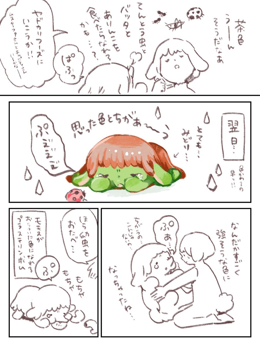 39 152 どんぐりになりたいモモス (ぬりたいところを塗って満足してしまいました)(どんぐり色のコルヌレプスを羨望のまなざしでみつめています)(プラステリンを待ってます) #リヴリーファンアート #うちのリヴリー 22/01/14 00:54