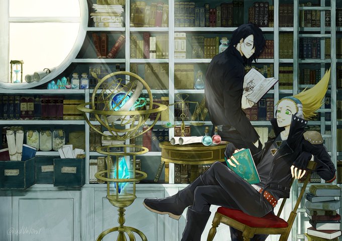 25 198 続きのすごいふわふわしてるマイ相。図書館(?)で資料を探してるっていうイメージの絵でした!(先日のログ本の表紙) 21/10/27 21:40