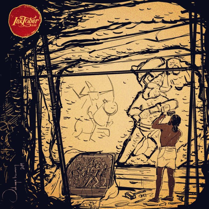 #inktober #inktober2019 -Day 5 'Build' - Mahishasuramardini Cave( Mamallapuram) is an Example of Tamil rock-cut architecture dating from the late 7th century, of the Pallava dynasty. #Mahishasuramardini #cave #mamallapuram #pallava #tamil #india #wacomintuos #adobephotoshop