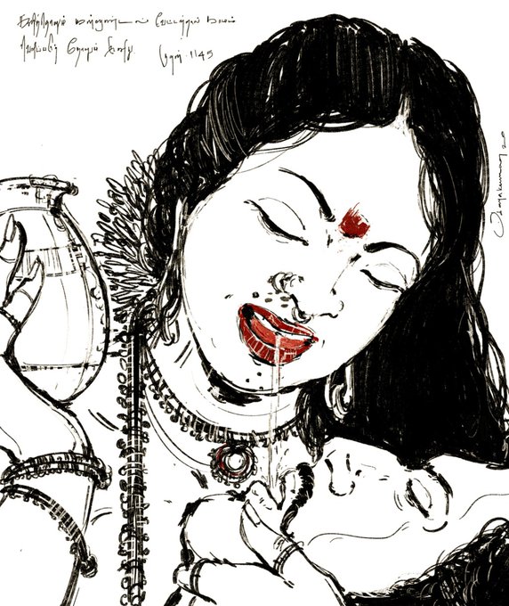 #inktober #inktober2020 -Day 8 - #teeth திருக்குறள் - காமத்துப்பால் பாலொடு தேன்கலந் தற்றே பணிமொழி வாலெயிறு ஊறிய நீர். (குறள் 1121) The dew on her white teeth, whose voice is soft and low, Is as when milk and honey mingled flow.