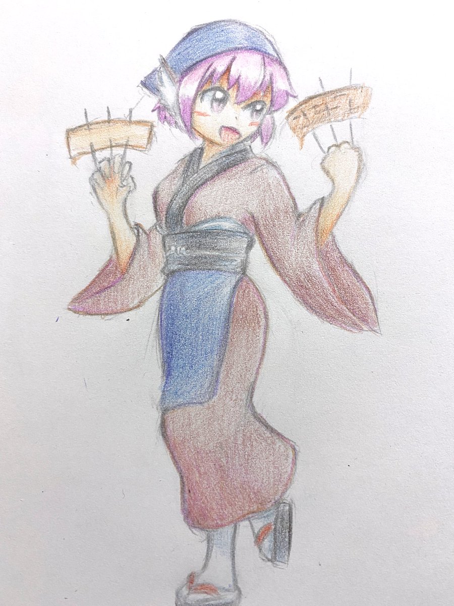 7 24 #深夜の真剣お絵描き60分一本勝負 #東方Project 色鉛筆でみすちーです おいしいヤツメウナギはいかがですかー 22/08/11 01:47