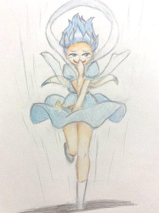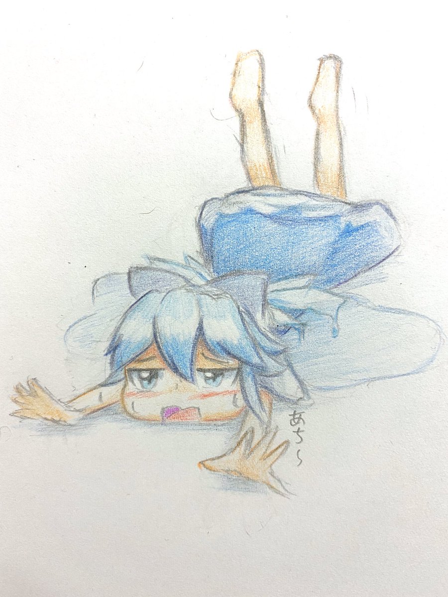 #深夜の真剣お絵描き60分一本勝負 #東方Project 色鉛筆でチルノです 最近の猛暑続きでツラいチルノ