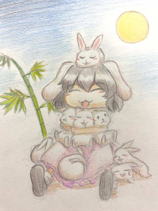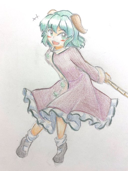 #深夜の真剣お絵描き60分一本勝負 #東方Project 色鉛筆でてゐです もっふもふ