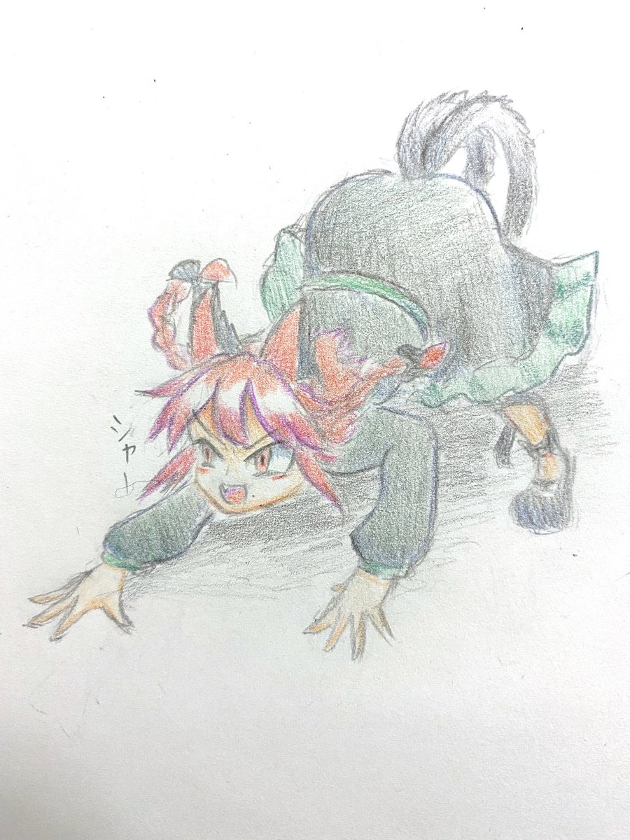 #深夜の真剣お絵描き60分一本勝負 #東方Project 色鉛筆でお燐です 威嚇