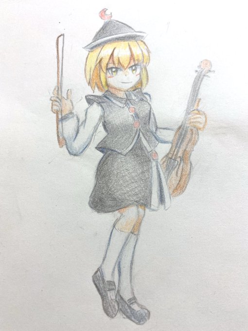 21 64 #深夜の真剣お絵描き60分一本勝負 #東方Project 色鉛筆でルナサです 22/08/31 23:56