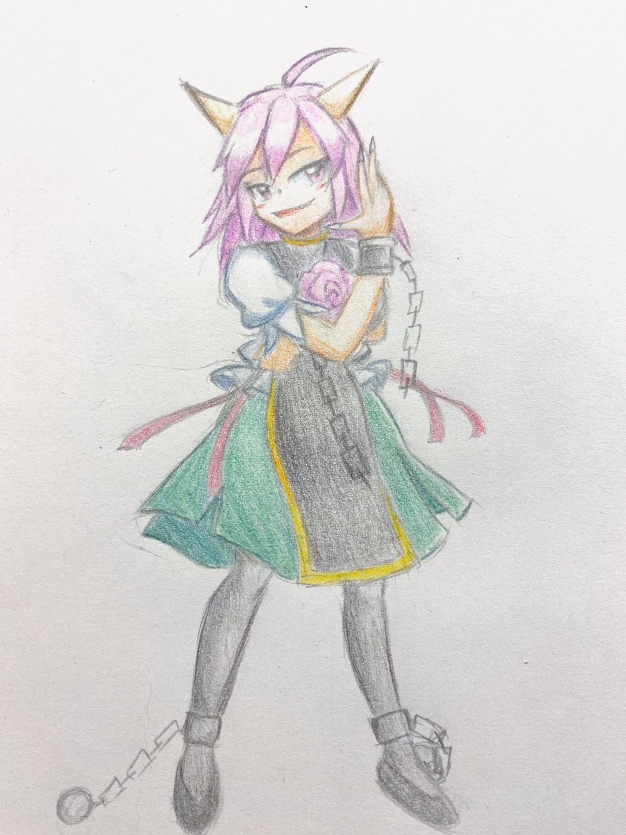 #深夜の真剣お絵描き60分一本勝負 #東方Project #東方 色鉛筆で久侘歌です