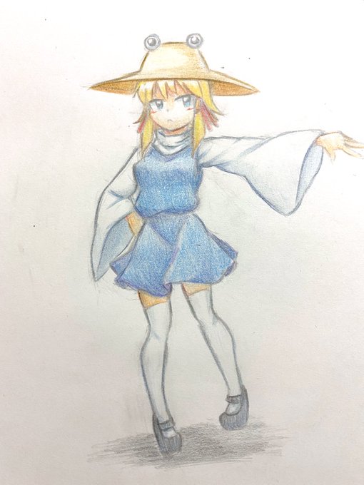 #深夜の真剣お絵描き60分一本勝負 #東方Project 色鉛筆で諏訪子です いい感じに描けました