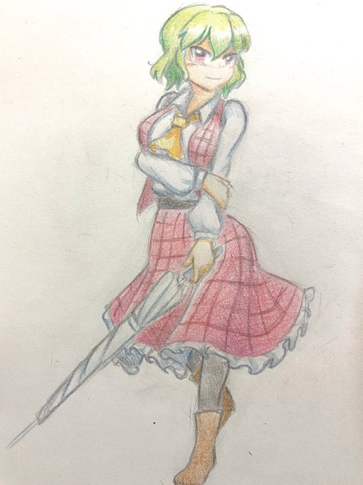 #深夜の真剣お絵描き60分一本勝負 #東方Project #東方 色鉛筆で幽香です 久しぶりのアナログイラストです