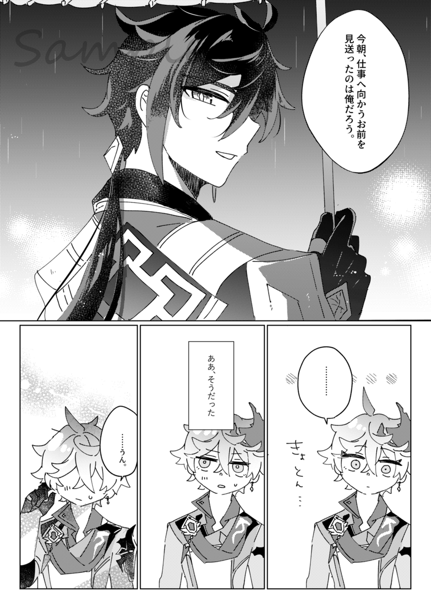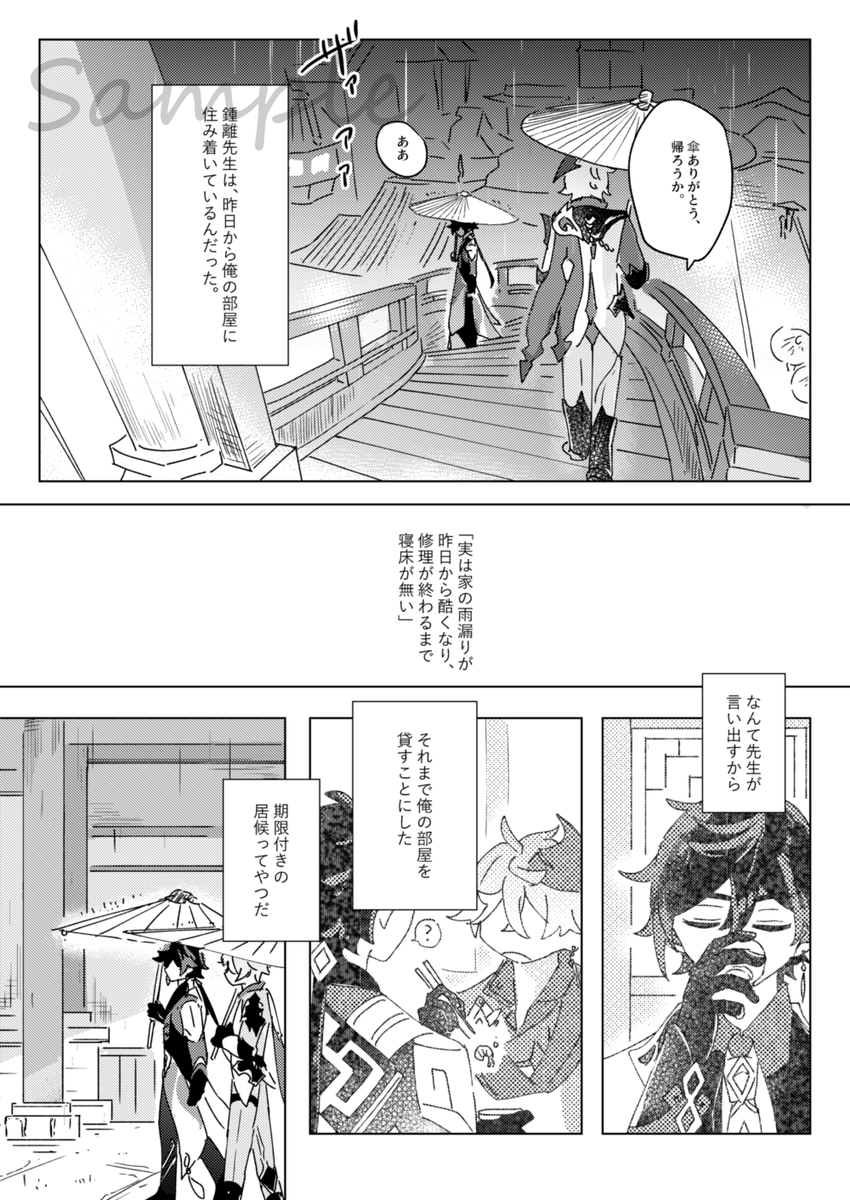 12/11 タル鍾オンリー 新刊②「雨のあとにながるるは」サンプル B5/62P/全年齢/価格調整中 タルの部屋に先生が居候する話 もっと長いサンプルと詳細→pixiv.net/artworks/10275…