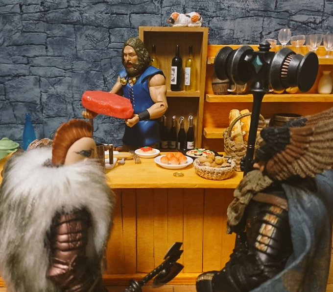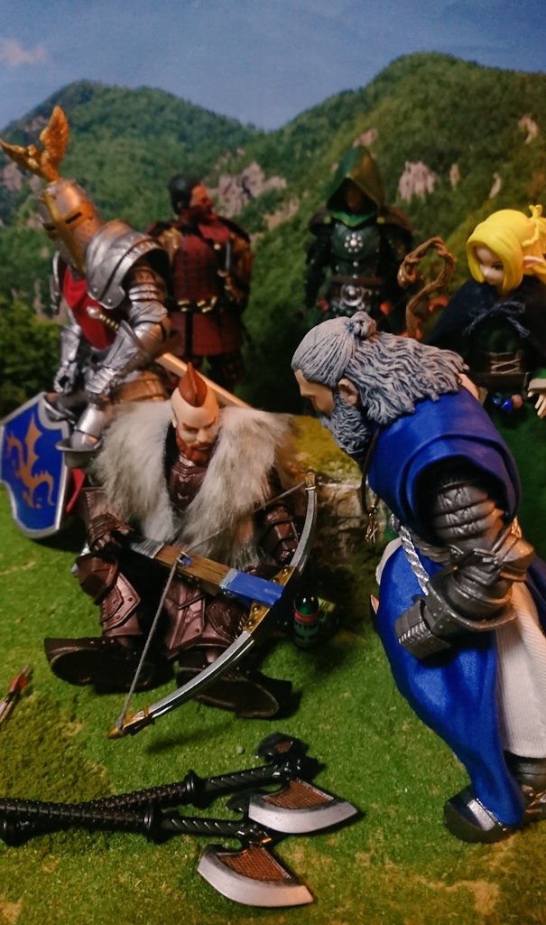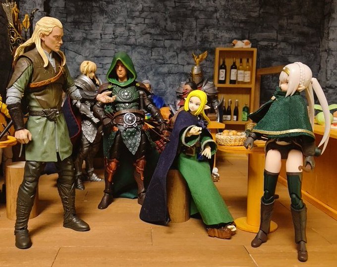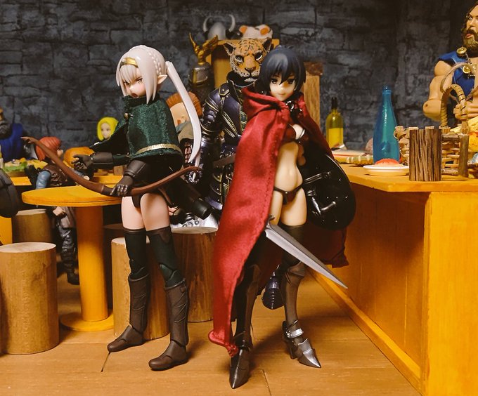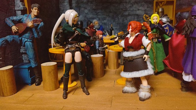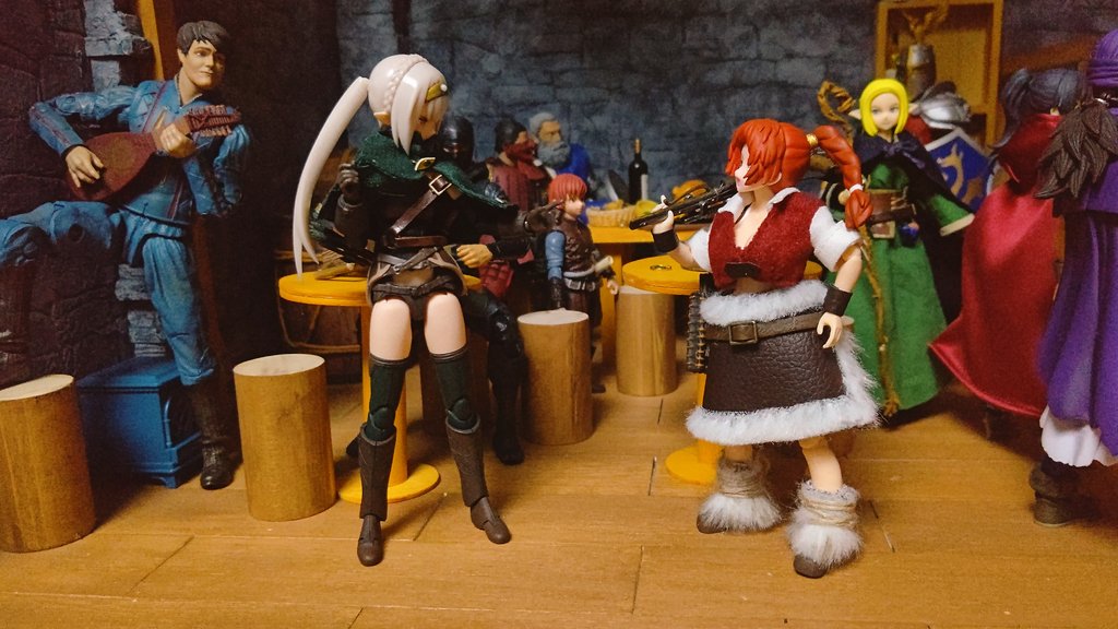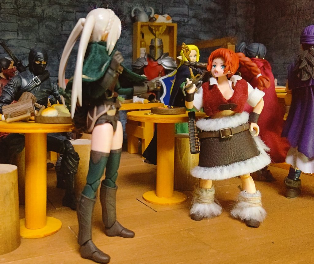 「雲の上の巨人亭」 いつも騒がしい酒場ですが今日はさらに騒々しいですね。 何やら口論をしているようです。 エルフとドワーフはやはり合わないのでしょう。 それはそれとして吟遊詩人の顔が少しイラッとします。 #ファンタジーフィギュアで遊ぼう #メガミデバイス