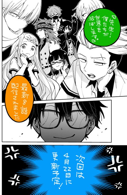 『先生!僕たちが世界を滅ぼします。』が最新エピソードの8話が本日配信されています!中間試験編が始まり学園モノらしくなってきました! 次回新エピソードは4月22日配信予定です! manga-up.com #マンガUP