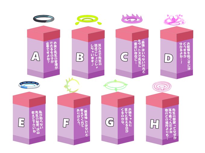 #第二回ブルアカ概念祭 「先生がどの生徒さんとクリスマスを過ごすか」平等に決めましょう。 全員箱に入って、誰か分からないようにして先生に選んでもらうんです! ね、これなら平等でしょ? (箱の側面にメッセージが添えてあります) #ブルアカ