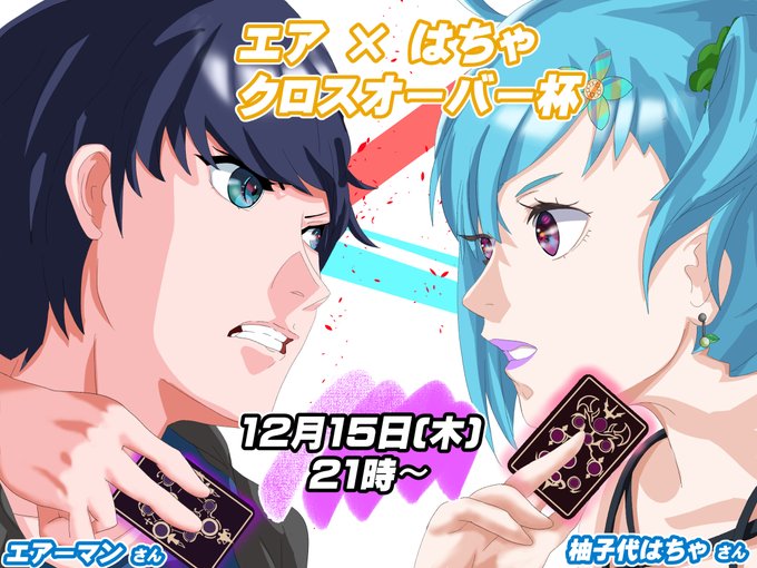 フォロワーのはちゃさんがシャドバの大会に参加されるそうなので応援イラスト描きました~!楽しんできて下さい! エアーマンさん(@earman178)と柚子代はちゃさん(@hachachr)の2名が賞金首というポジションで参加されるみたいです。運営はみかんさん(@mikan0224mikan) twitter.com/hachachr/statu…