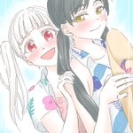 しきめいでアロハ🤙 一応全員分描きました アロハっぽい服が特別好きなわけではありませんが、髪型をお揃いにされたりするのによわい🫠 それはそうと四季さんの衣装はもうこれ水着では? #若菜四季 #米女メイ twitter.com/i/web/status/1…