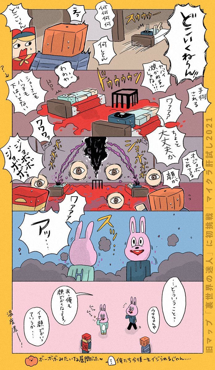 3 62 男たち…2020マップありがとうございます…モトヤMVPじゃん… ここの寒暖差めちゃくちゃ好きです…🎃🐼🐧🐍(この後の鎖綱渡りもやばい) #マイクラ肝試し2021 21/09/27 00:08
