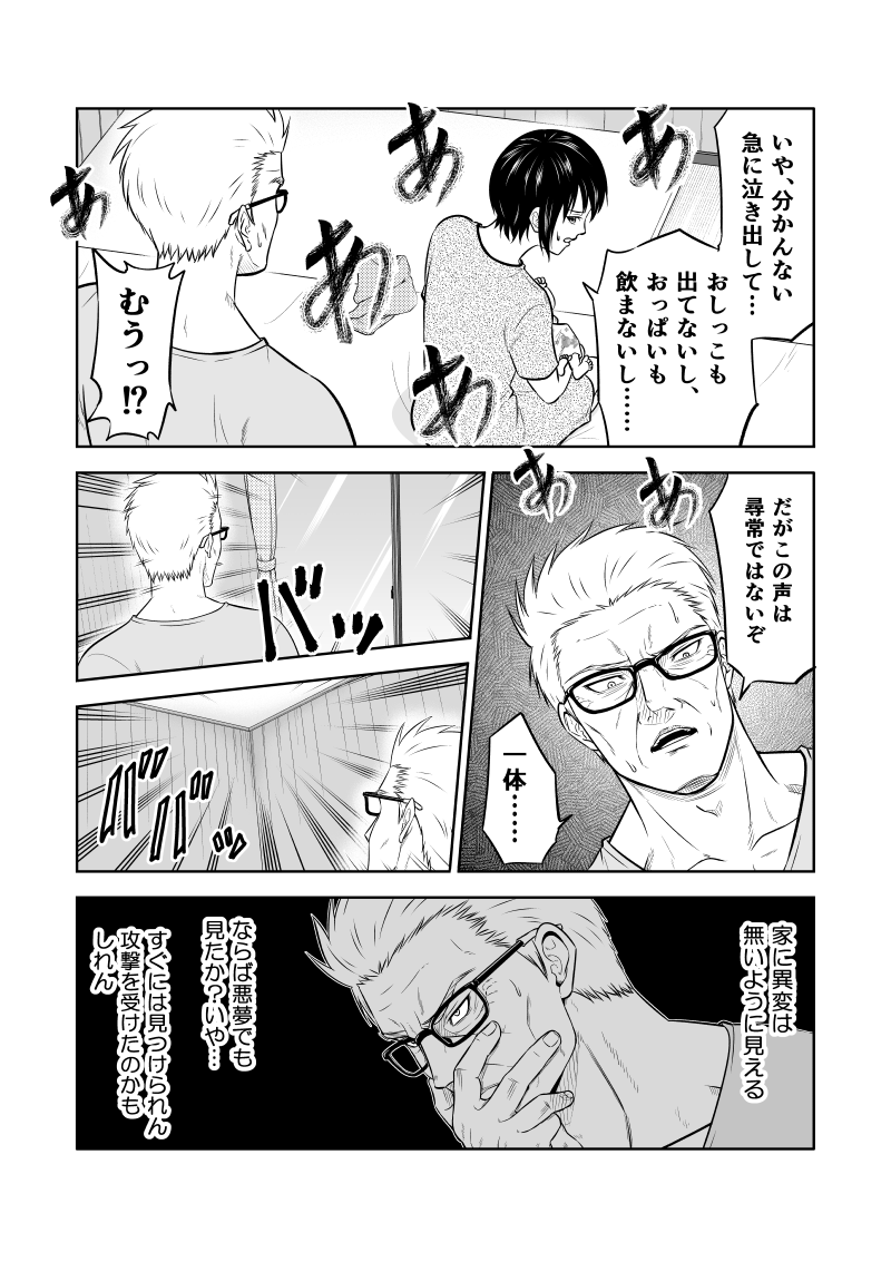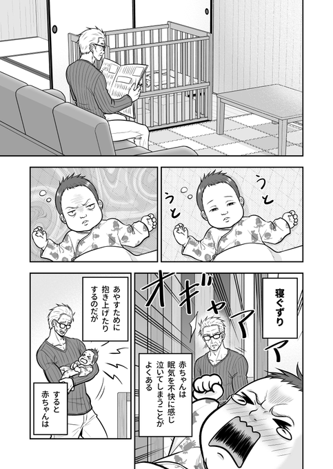 単身赴任中の父親が、妻の実家で元刑事の義父と一緒に赤ちゃんの寝かしつけを頑張る話2/4