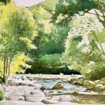 1 13 【制作中・水彩画🎨】以前、妻と旅行した青森県の奥入瀬を描いています。(^^) #奥入瀬 #旅行 #水彩画 #水彩 #風景画 #風景 #青森県 #青森 #東北 #川 23/03/13 18:55