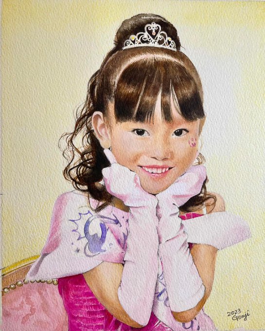2 13 【依頼品】依頼者様のお孫さんの肖像画です。完成し納品いたしました。ペンと水彩、色鉛筆で描いています。🎨 ご依頼承っております。ご相談くださいませ。 サイズ21.0×26.4cm #水彩 #人物画 #art #水彩画 23/04/17 11:10