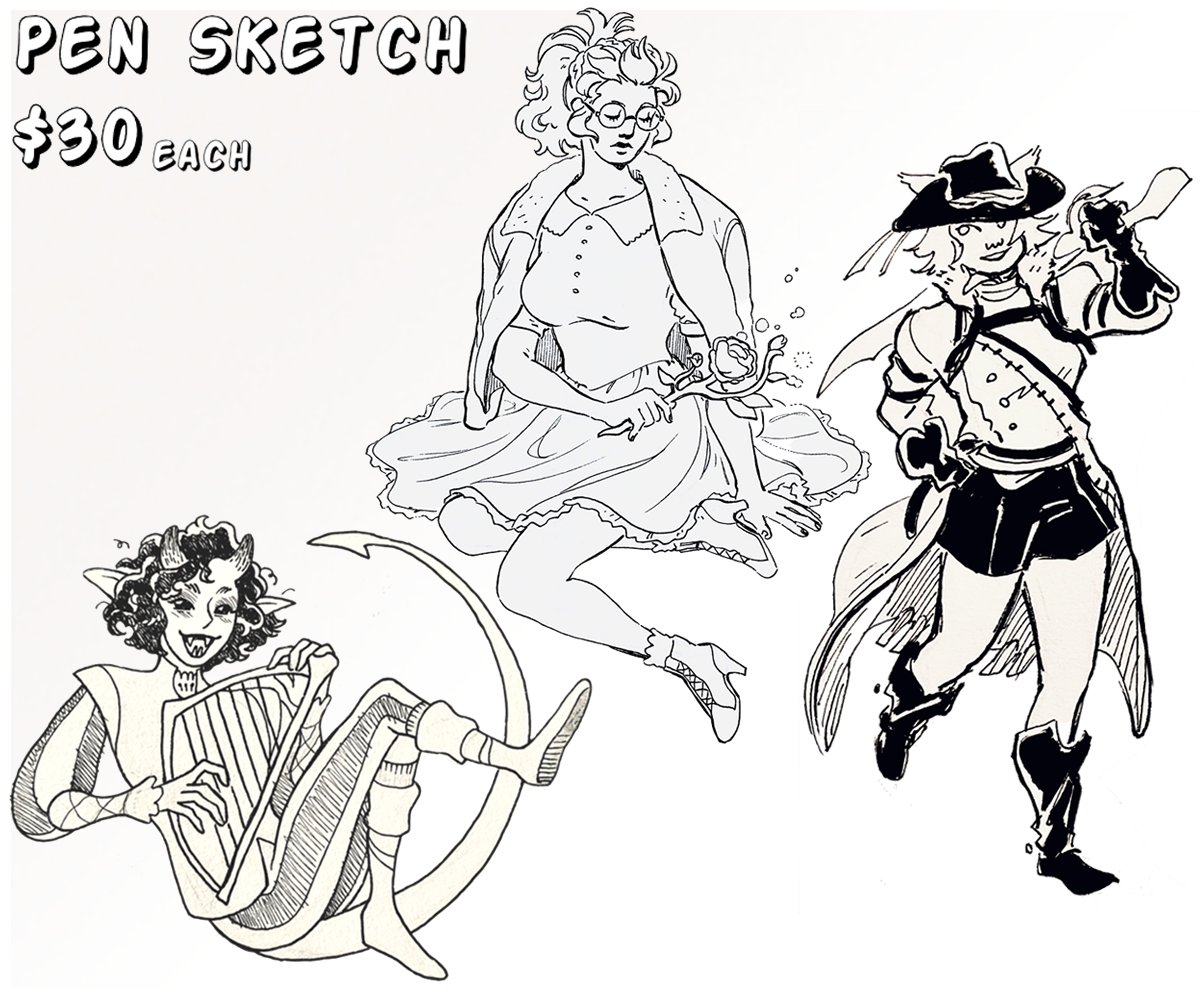 opening 3 slots for both options! pen sketch can be mailed anywhere for an extra $5, print friendly versions of the painting is no extra fee. DM or email ueeyasu@ gmail