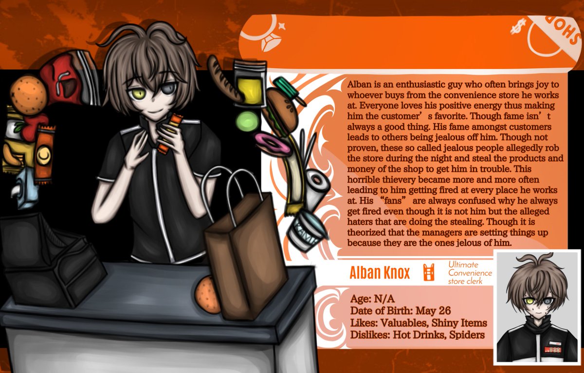 Its the best clerk at your service! 🎭Alban Knox the Ultimate Convenience store clerk. He will always try his best to make his customers smile. He hopes to make his schoolmates satisfied by his services and would not cause any trouble. #AlbanKnoxArt