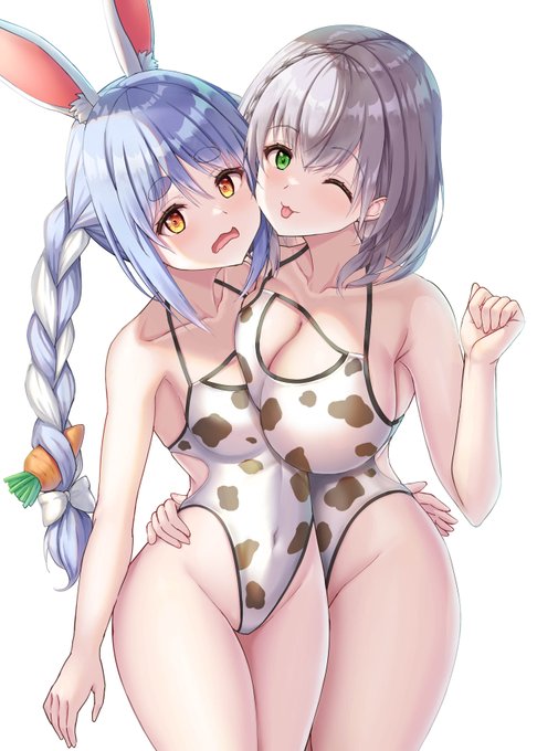 103 381 牛柄の水着を着るノリのいいノエルさんとそうでもないぺこらさん #ぺこらーと #ノエラート 23/07/30 22:12