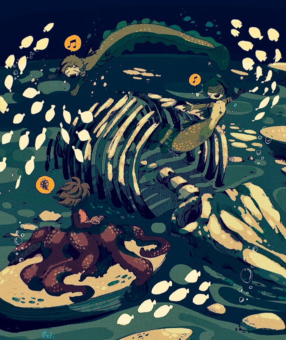 #ツイステファンアート 🐠鯨の骨の周りで遊ぶ稚魚達🐠