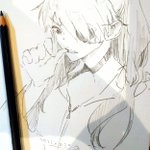 #RTした人のアイコンをシャーペンでさらさら自分の絵柄で描く シャーペンなかったので鉛筆でさらさらしました🧚かまってもらってご満悦
