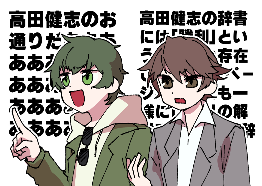 210508 以前らくがきFA上げてたんですが動画化記念にちょっと清書 桃+さんとGENさんで2窓でリアタイしてたらちょうど桃+さん活躍シーンと真っ先に気がついて言及するGENさんが見れて(私が個人的に)嬉しかったです 主人公とーたす #いらすとーたす #GENです