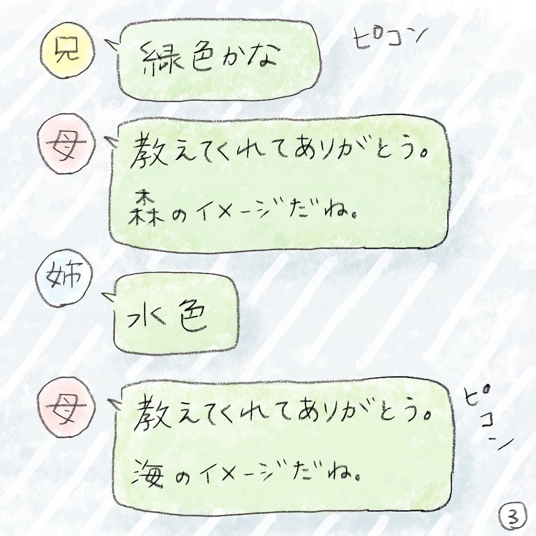 左上が1コマ目です🕺 母から度々こんなよく分からないラインが来るんですが、私はわりとスルーしちゃうけど兄は毎回すごいちゃんと返してて偉いです👩🏫💮 #4コマ漫画 #コミックエッセイ #漫画が読めるハッシュタグ