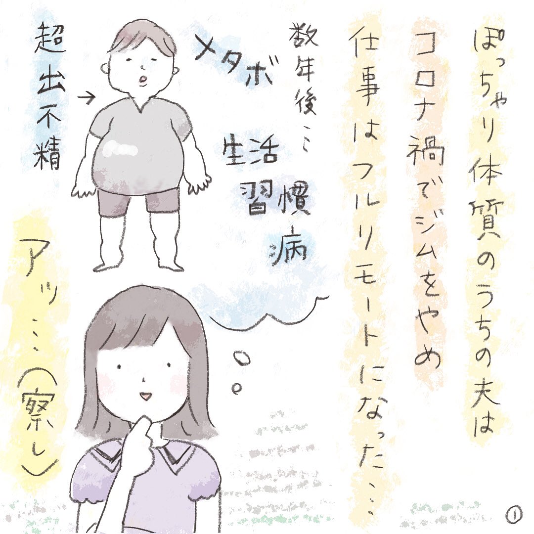 左上が1コマ目です🎃🌽 まだアラサーなのに健康診断でコレステロールがひっかかる夫… 将来が心配すぎます👨🎤 一見イチャついてるように見えますが私の扱いは乱暴です👸🧜♀️ #4コマ漫画 #夫婦漫画 #漫画が読めるハッシュタグ