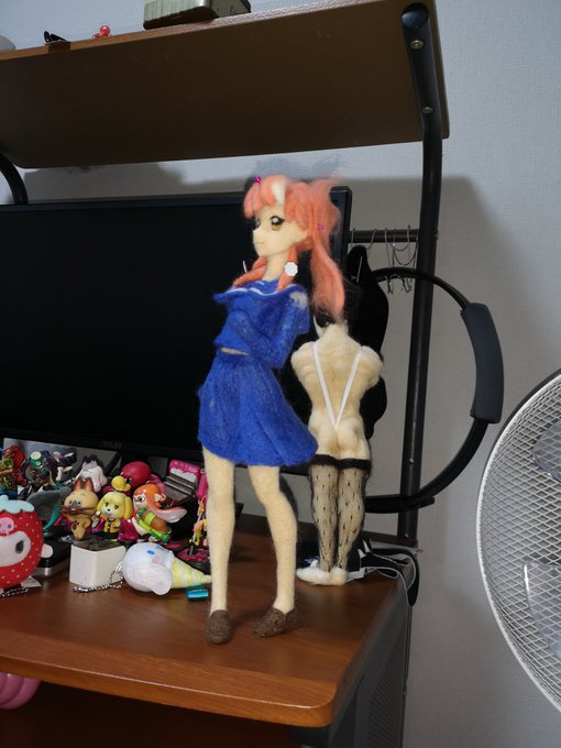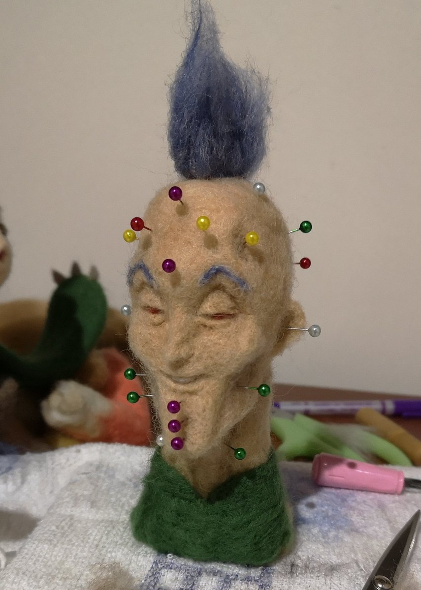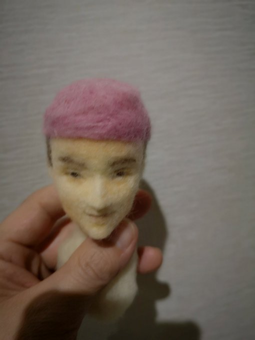 髪の毛たいへんだと思われ ツンツンしてるからね ( ´∀`)σ)∀`)ツンツン #羊毛フェルト