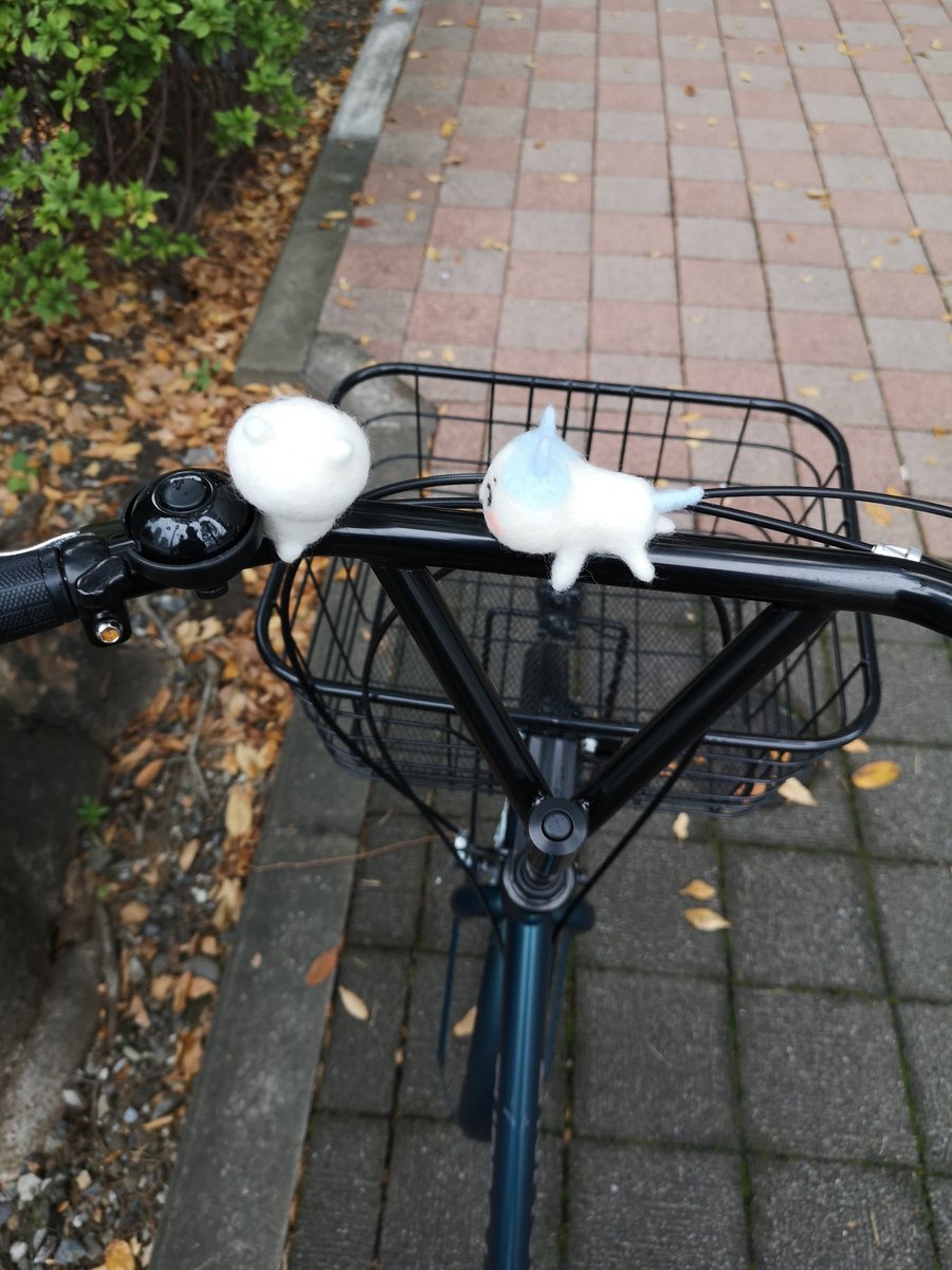 自転車に乗せたままだとさらわれるという意見が多いので帽子に乗せることにした #ちいかわ #羊毛フェルト