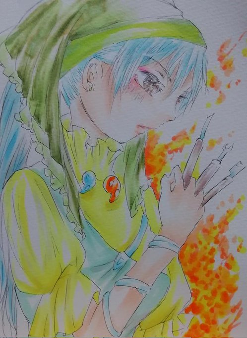 10 41 #深夜の真剣お絵描き60分一本勝負 河城にとり 大勢の河童にとり囲まれてゐました… 23/07/21 22:57