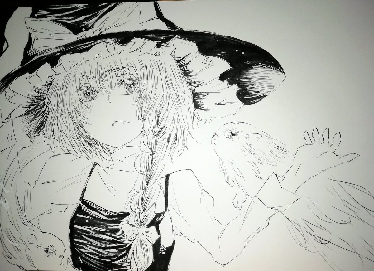 #深夜の真剣お絵描き60分一本勝負 東方獣王園の魔理沙です。 帽子のりぼんがが、かわいいですよね。