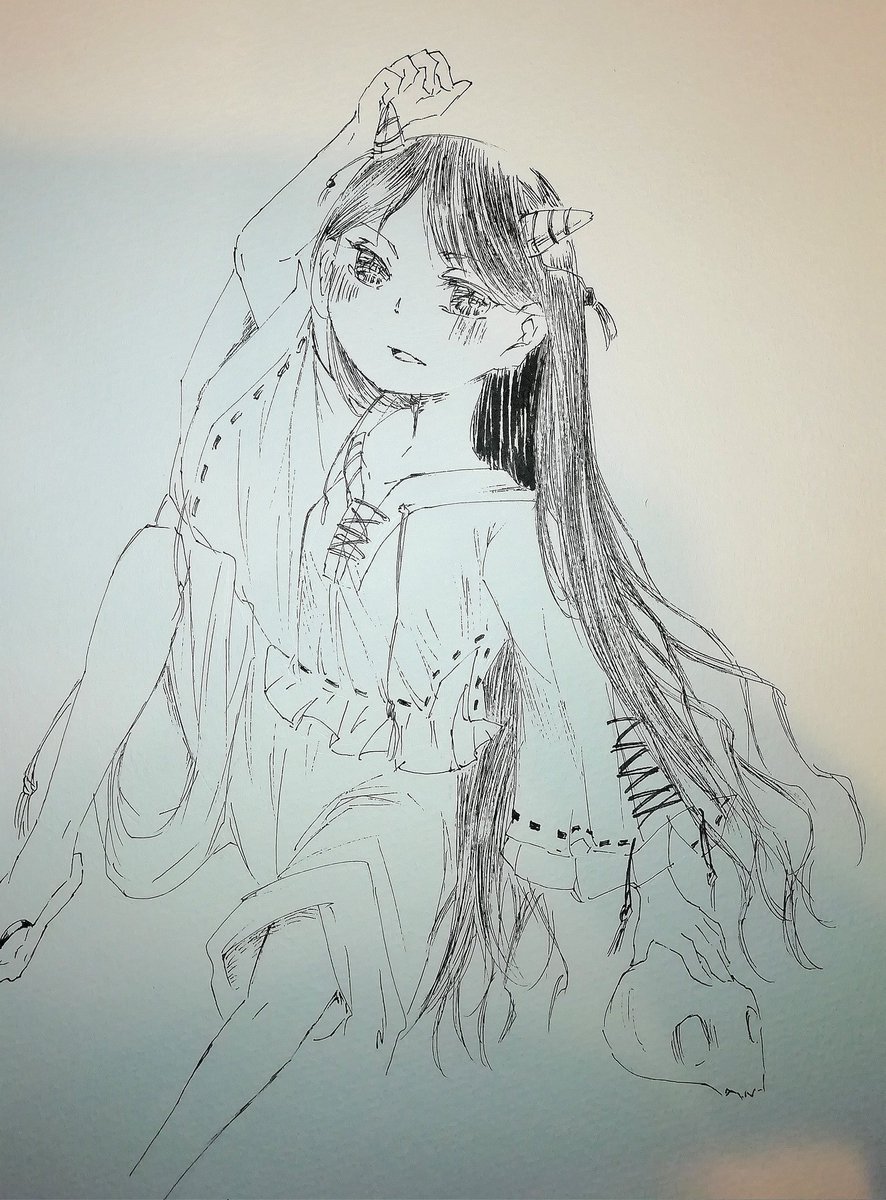 4 20 #深夜の真剣お絵描き60分一本勝負 天弓千亦 東方虹龍洞 のキャラクター初めて描きました。難しい 23/04/12 23:34