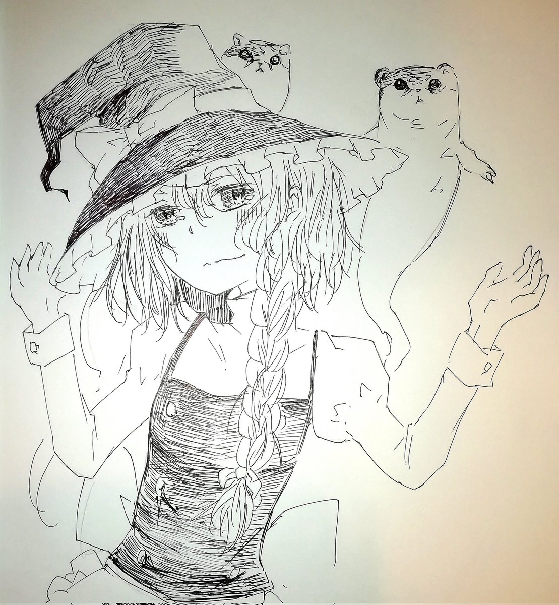7 24 #深夜の真剣お絵描き60分一本勝負 東方獣王園の魔理沙です。 帽子のりぼんがが、かわいいですよね。 23/05/24 23:10