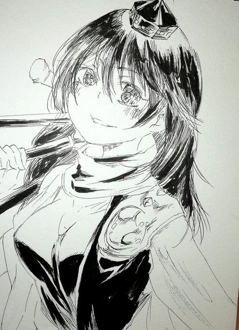 #深夜の真剣お絵描き60分一本勝負 天弓千亦 東方虹龍洞 のキャラクター初めて描きました。難しい