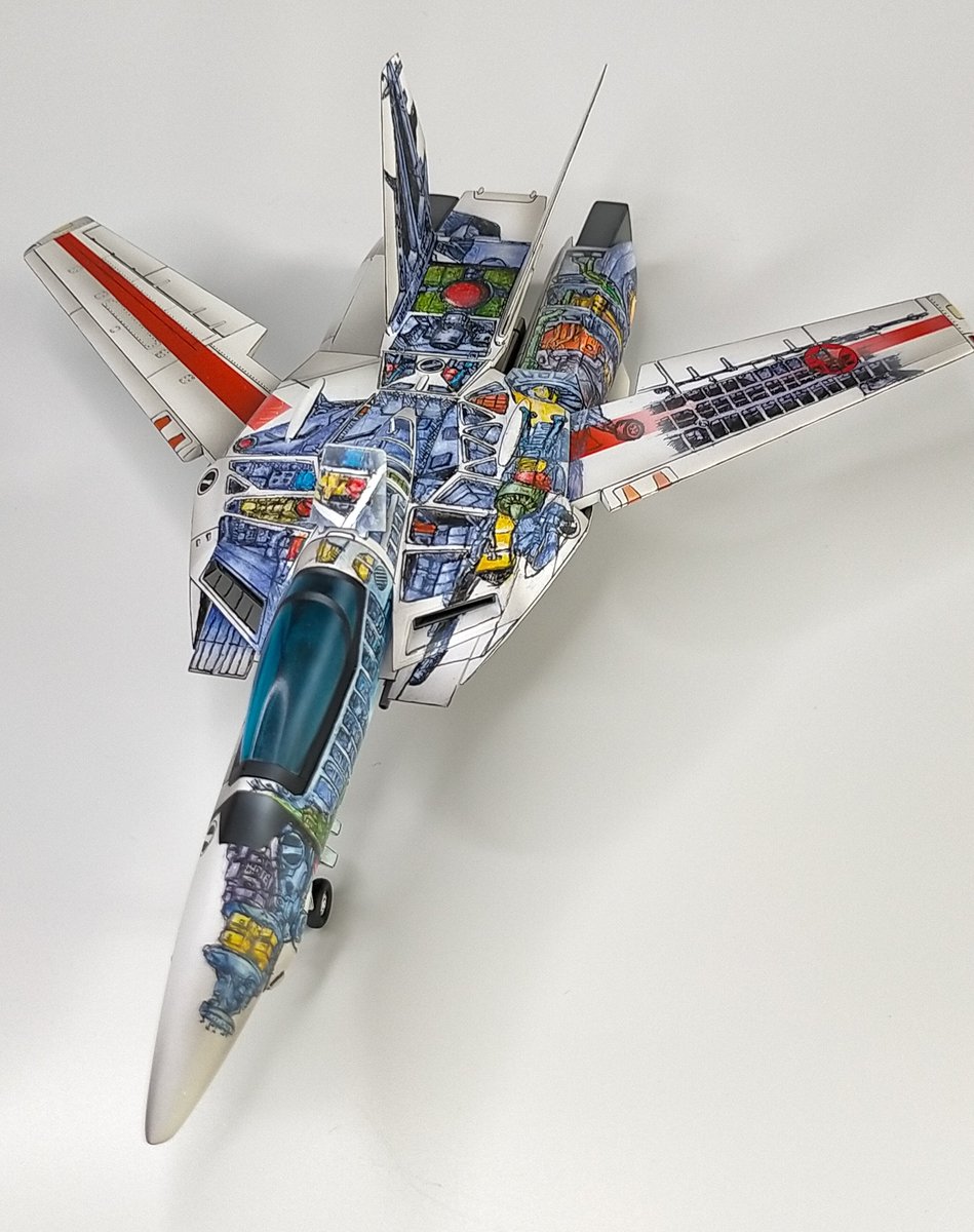 ハセガワファイターバルキリーVF-1J 透視図風塗装で完成しました‼️ マクロスパッケージアート集に掲載されている透視図を参考に製作しました。 #マクロスモデラーズ #イラスト風模型 ⬇️画像続きます
