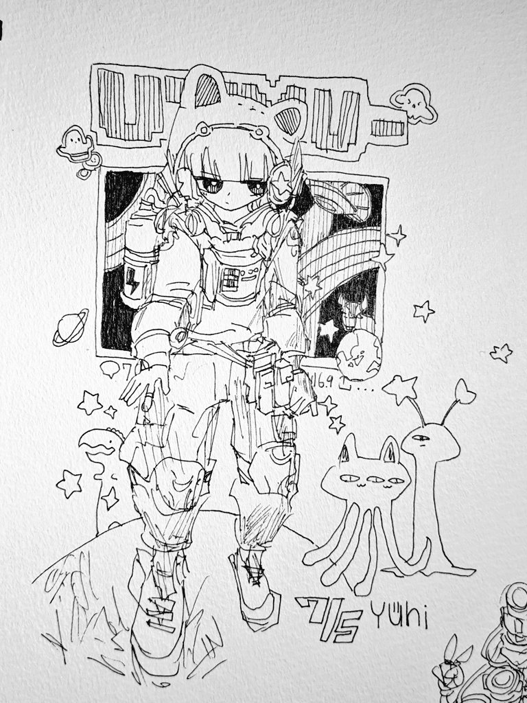 0 3 うちゅー #イラスト #ペン画 23/07/12 22:59
