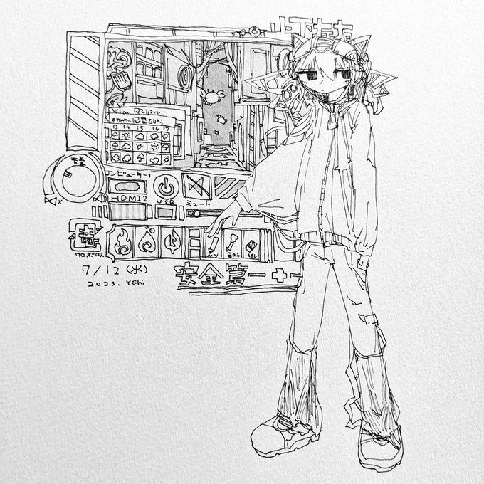 0 7 ✌ #イラスト #ペン画 23/07/17 22:53