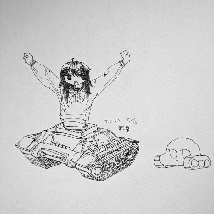 1 13 戦車 #イラスト #ペン画 23/06/08 22:52