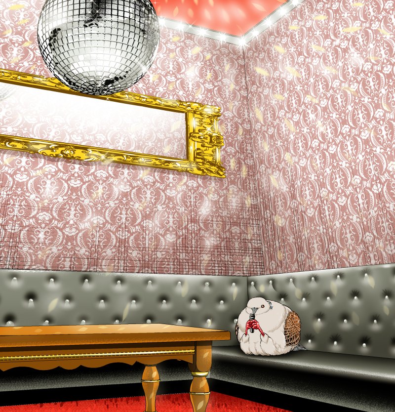 カラオケルーム。 1羽の方が広い部屋なのがお気に入りポイントです。